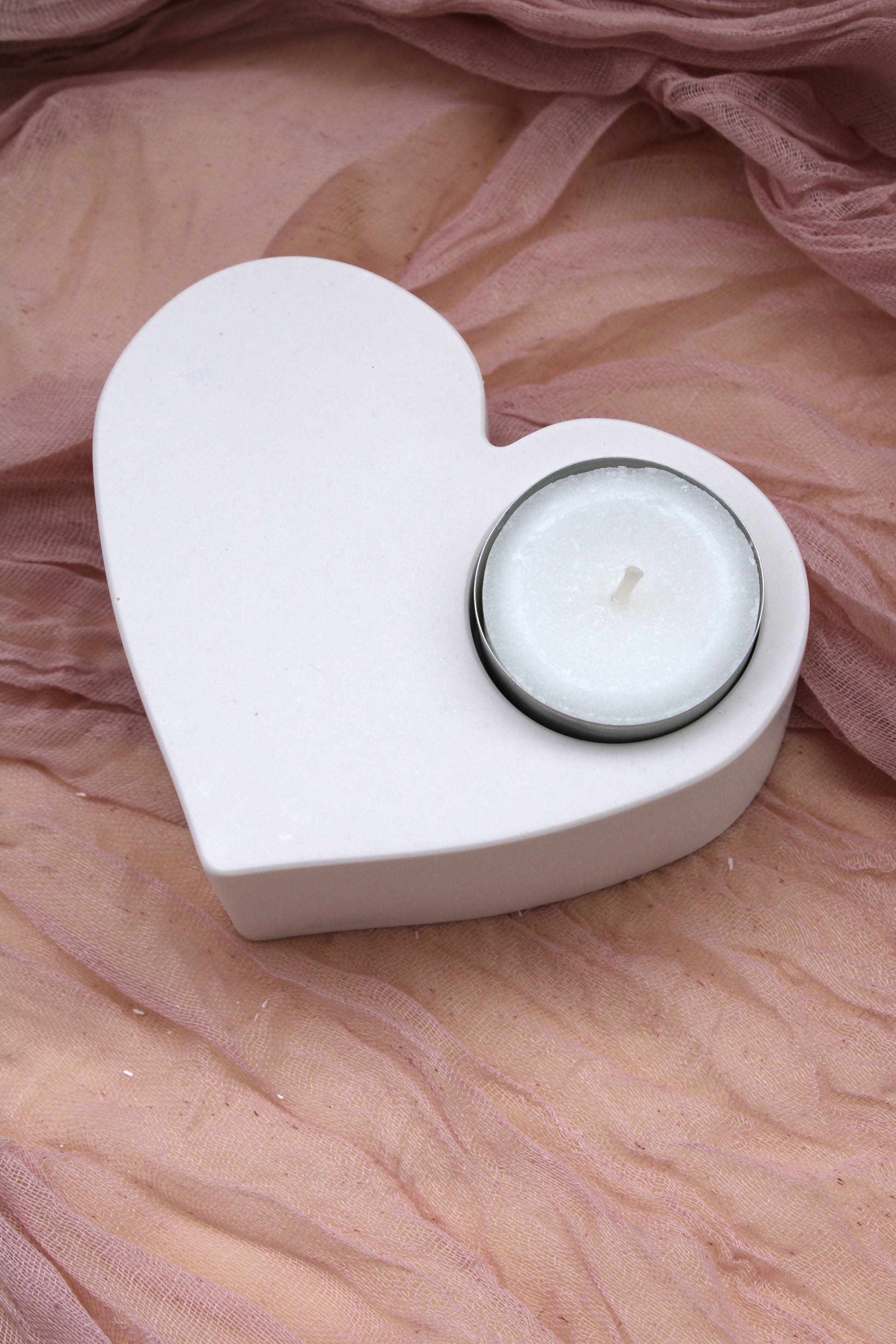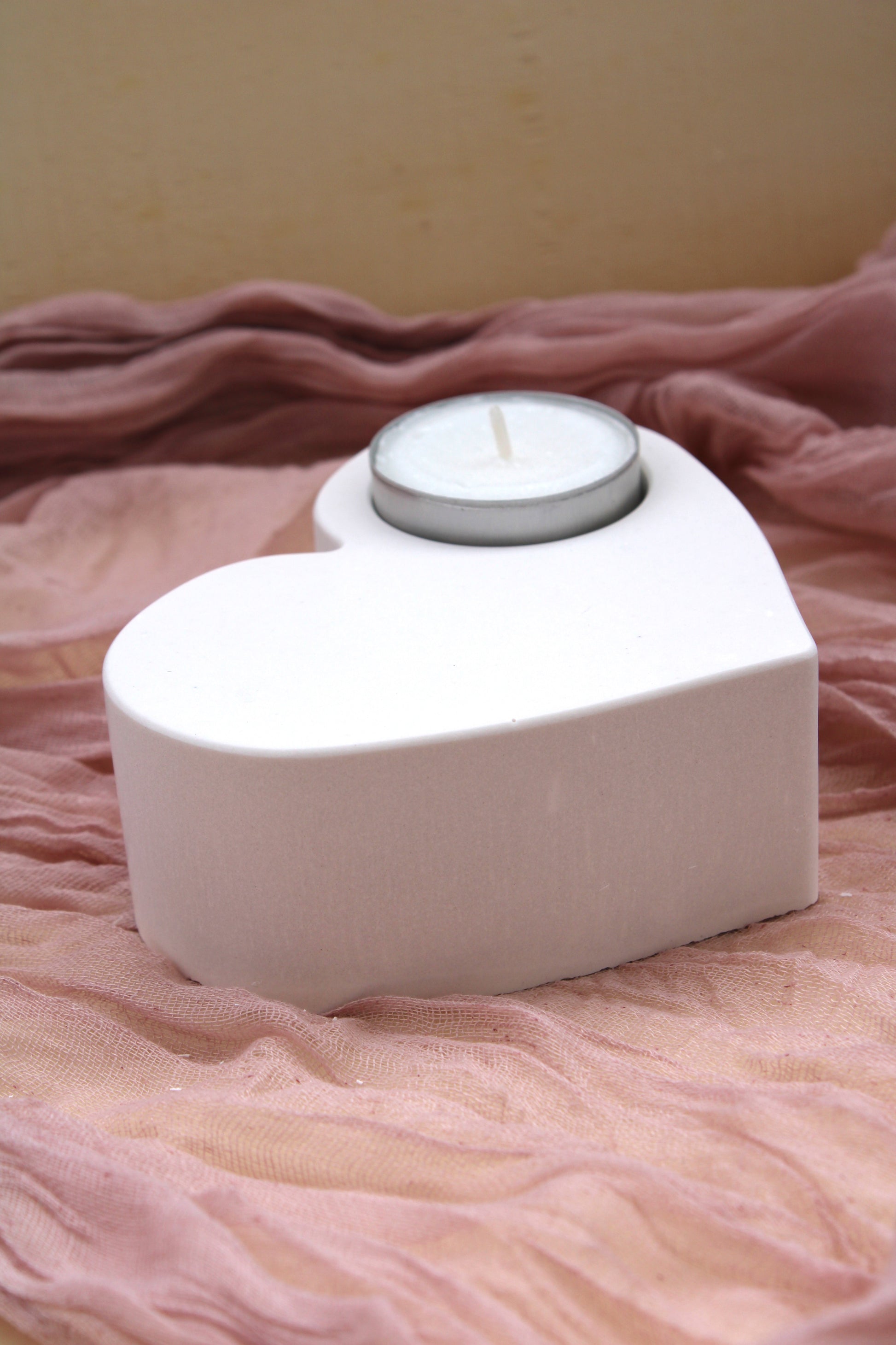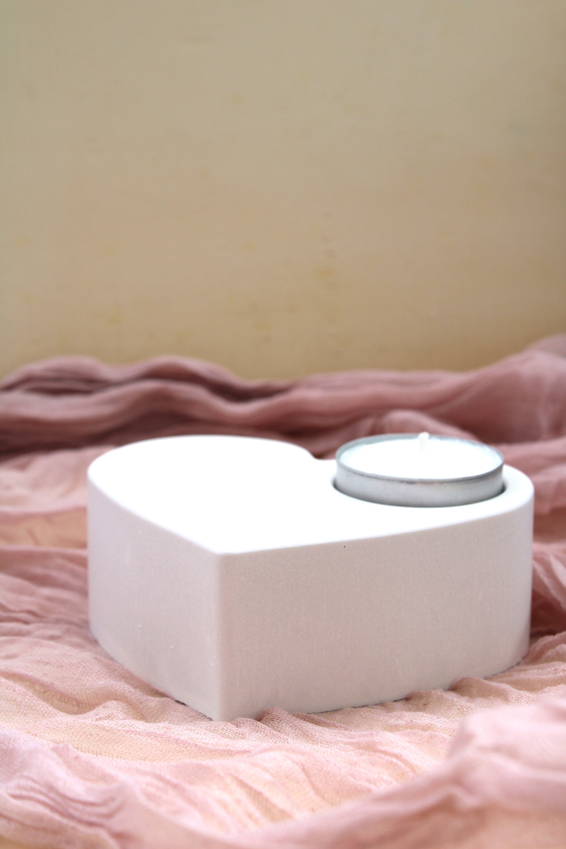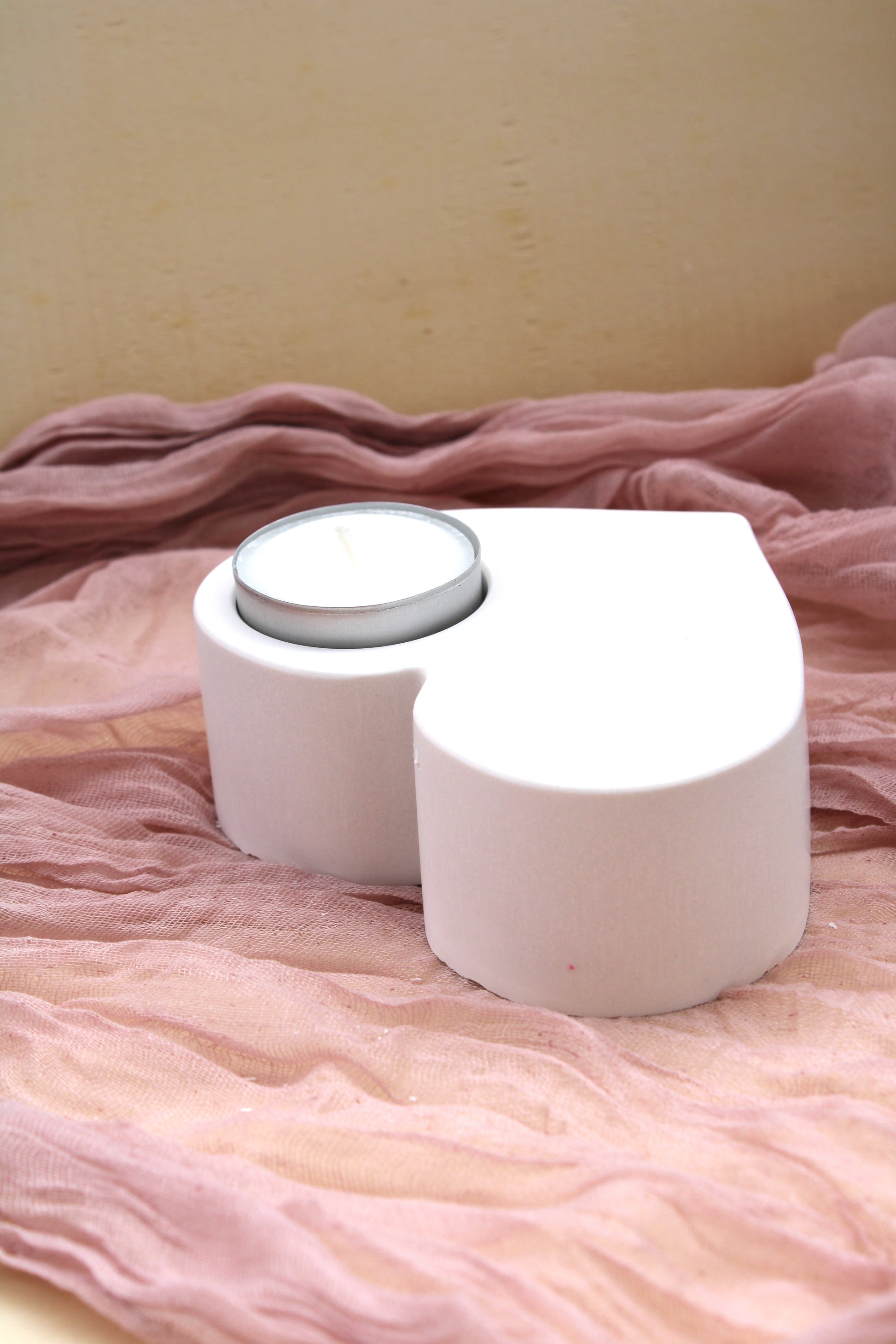 Feito à mão em gesso, com espaço para uma vela pequena, transforma qualquer ambiente num recanto de calma e afeto.